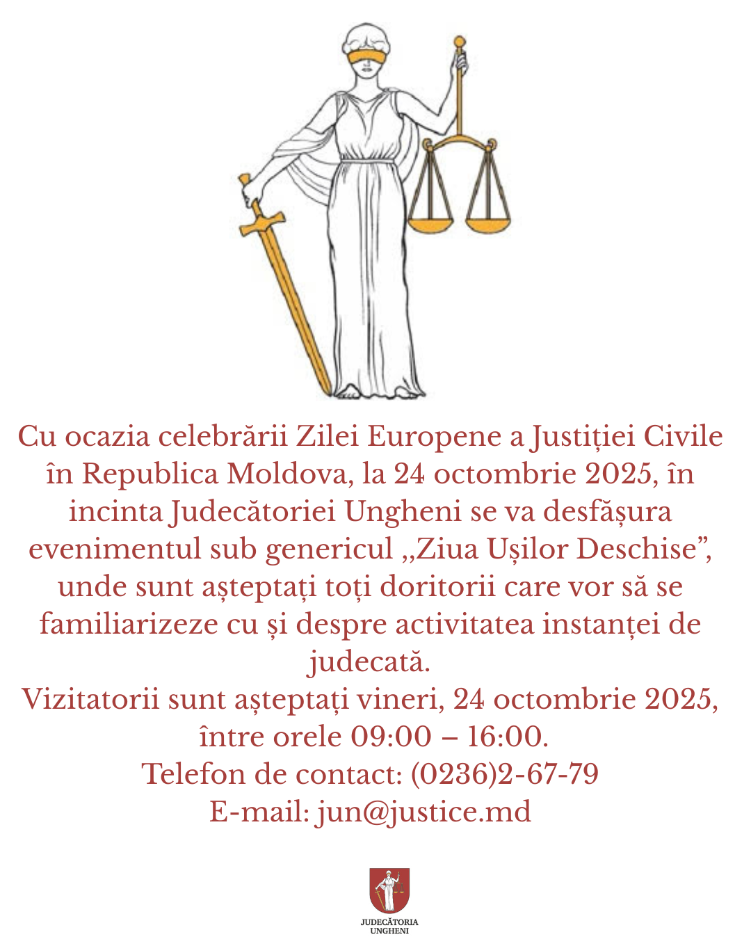 24 octombeie 2025 - Ziua Ușilor Deschise la Judecătoria Ungheni